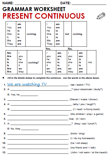 Мета:  практикувати учнів у вживанні теперішнього тривалого часу;